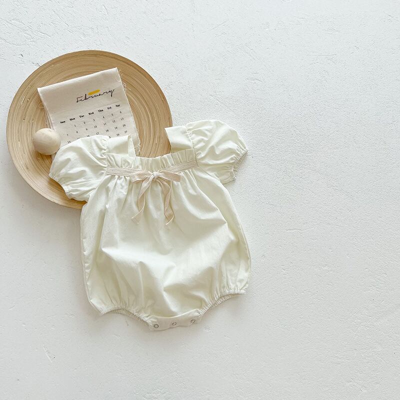 パフスリーブセンターリボンロンパース
