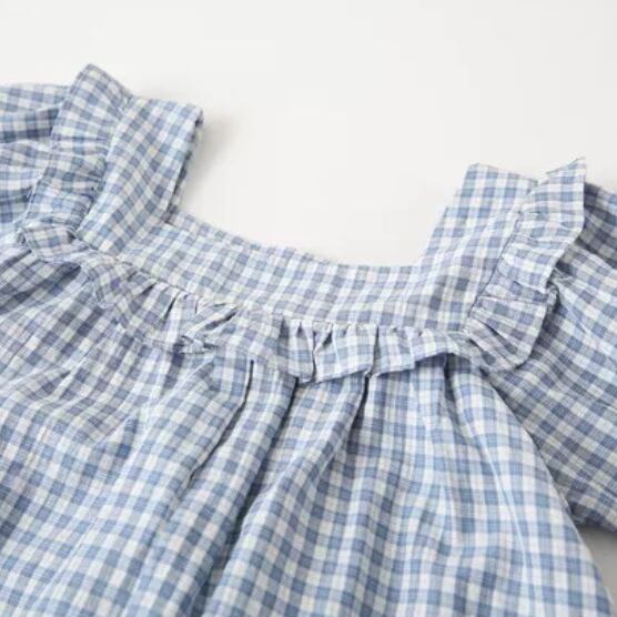 襟下のフリルが可愛いチェック柄のワンピース