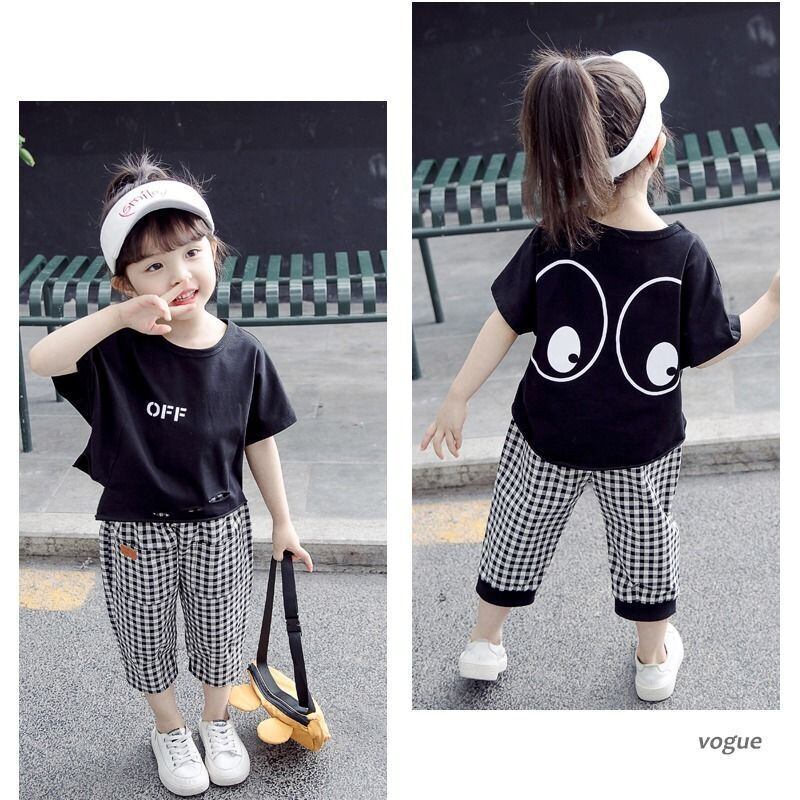 バックプリントが可愛いTシャツとチェック柄のパンツセットアップ♡