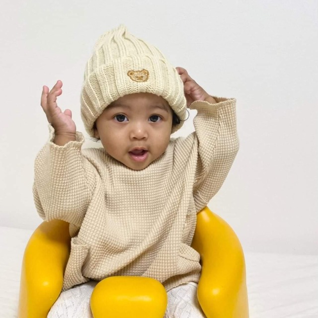 ベアのワンポイントロゴがとても可愛いニット帽子♡