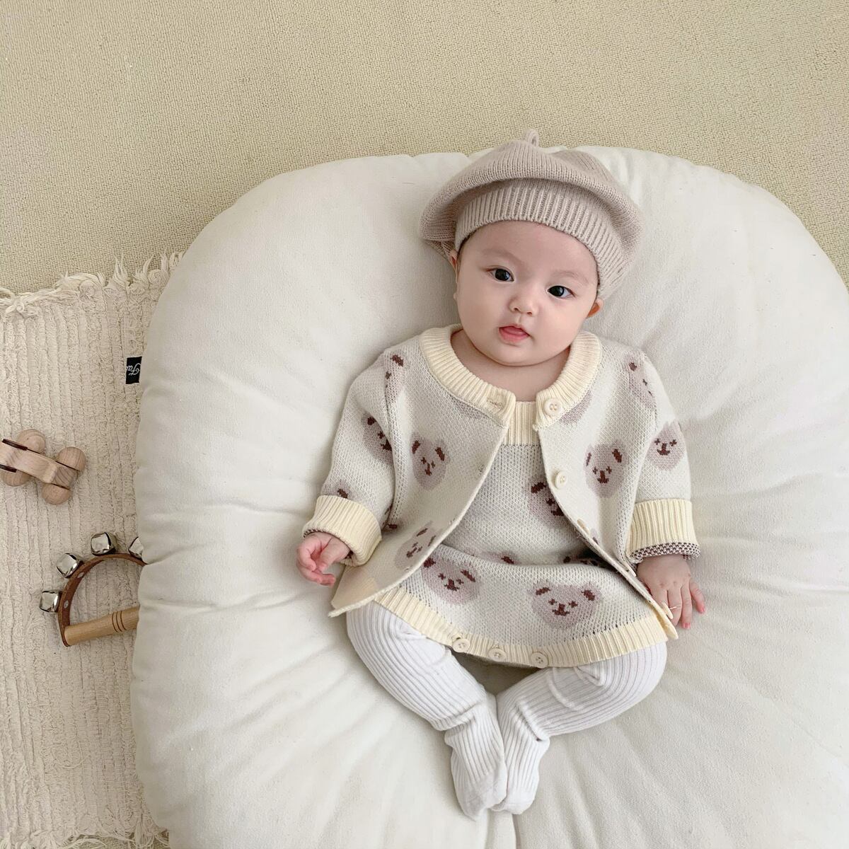 【即納】くまちゃん柄ロンパース&カーディガン2セット