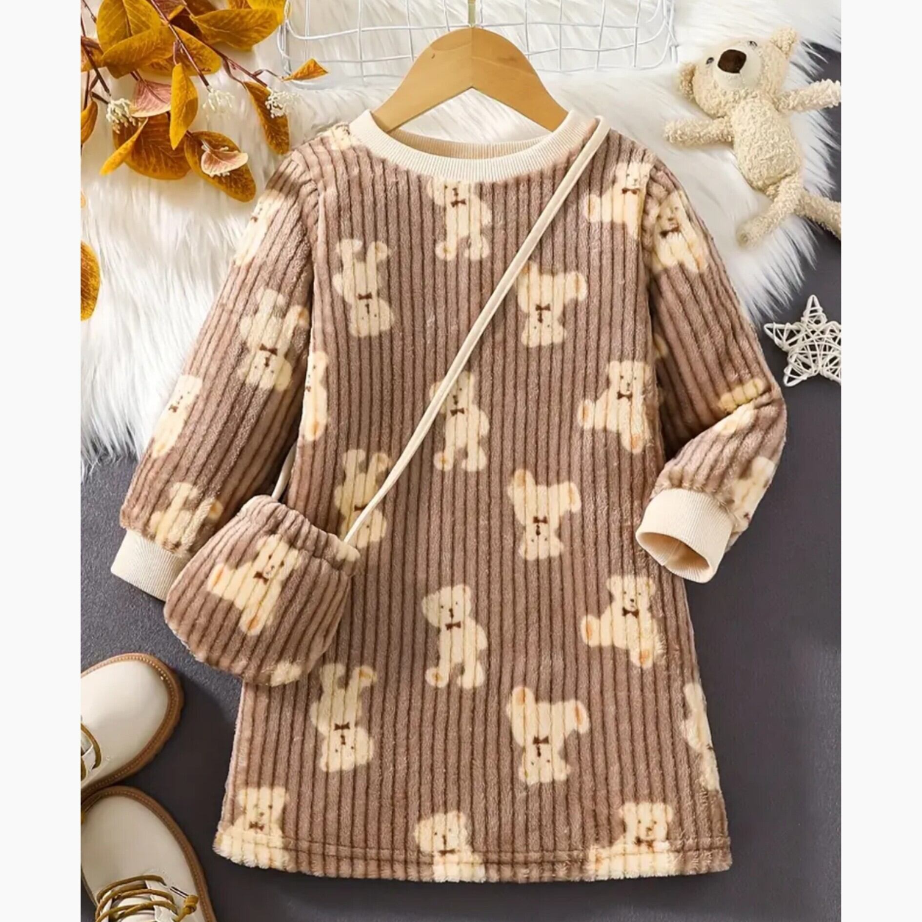 【即納】くまちゃん柄コーデュロイワンピースポシェット付き